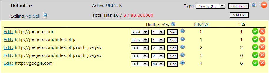 If we then add the URL http://JoeGeo.com/index.php then the limiters will be set to the following